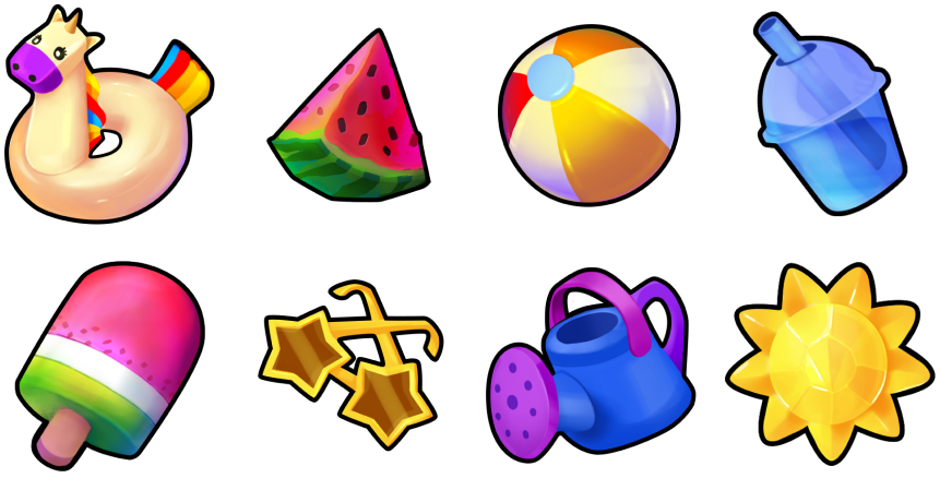 The theme is cheerful, vibrant and stylized. The art elements are hand painted in Photoshop.